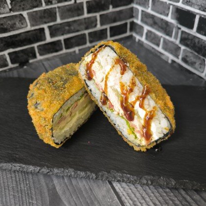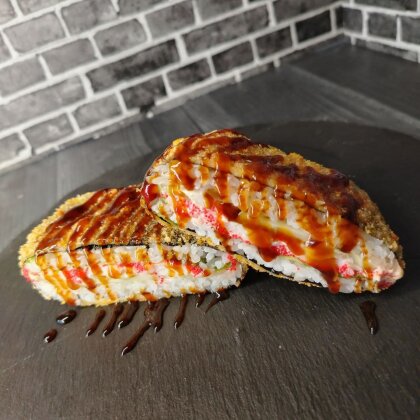 Рис, снежный краб, сливочный сыр, огурец, лист салата, соус «Кимчи»