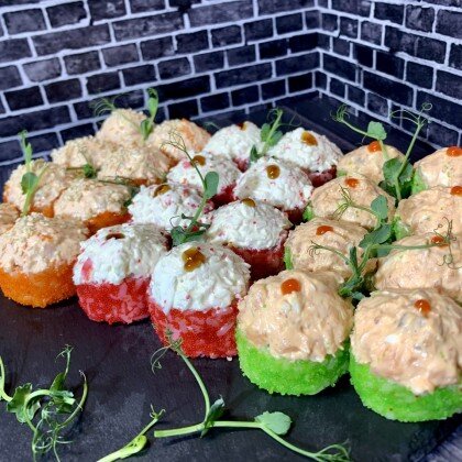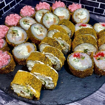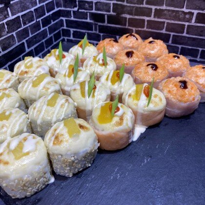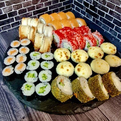 Запечённый с мидиями, запечённый с гребешком, "две половинки"